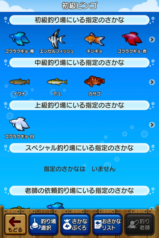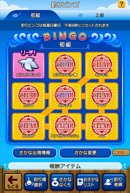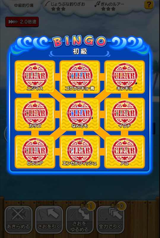 初級と中級の釣り場だけでビンゴが完成!