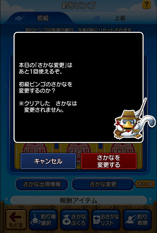 最後の1匹が初級か中級の魚になるまで毎日変更。